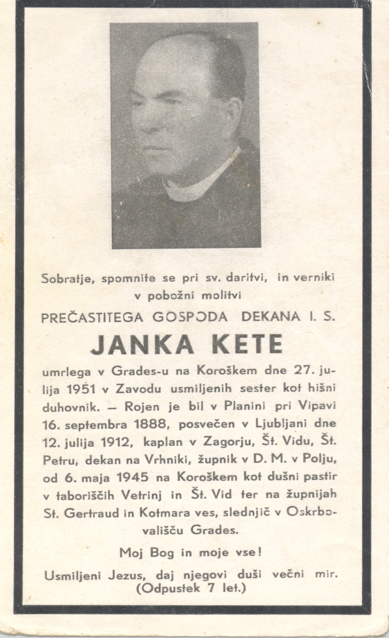 Pripravljeno po zapisu nečakinje Marjetke Bogataj in podatkih družinskega arhiva nečakinje Magde Sever.