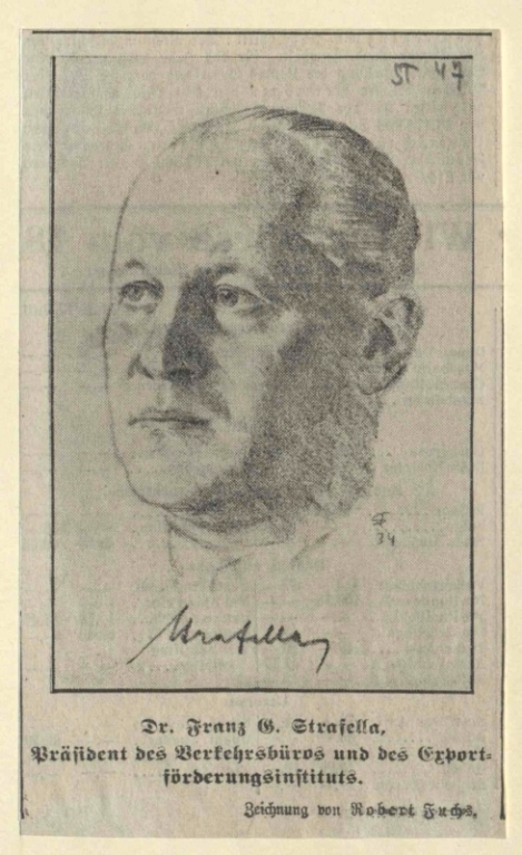 Generaldirektor Dr. Franz Strafella. Wiener Zeitung, 4. okt. 1930, let. 227, št. 230, str. 6. Dostopno na: https://anno.onb.ac.at/cgi-content/anno?apm=0&aid=wrz&datum=19301004&seite=6 (citirano 20. 12. 2021).
